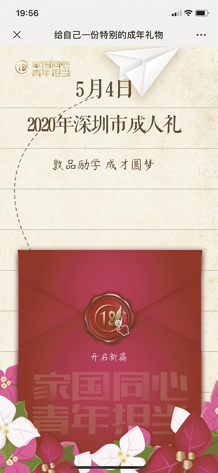 5月4日,由深圳市文明辦、深圳市教育局、共青團深圳市委員會主辦,深圳報業(yè)集團深圳晚報社承辦的“2020深圳市成人禮”線上宣誓典禮舉行,吸引了深圳眾多即將成年的學(xué)子積極參加。對這次特殊的成人宣誓典禮,學(xué)子們紛紛表示很特別,很暖心。