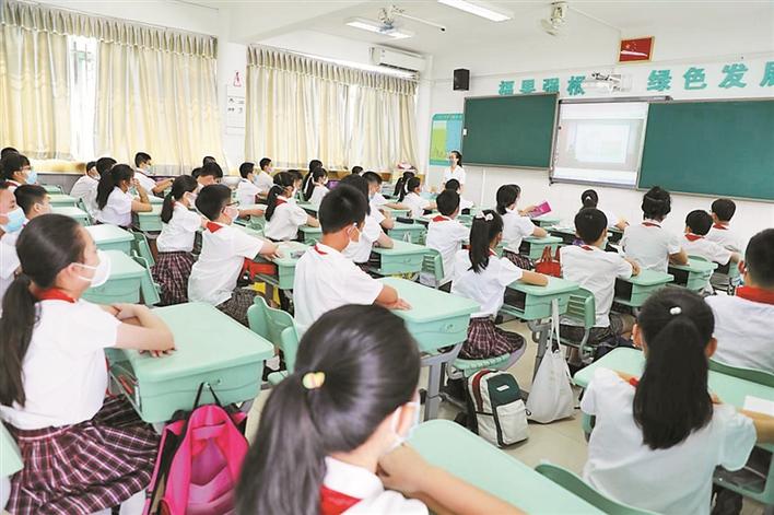 福強小學學生在教室收看同步直播的復(fù)學第一課。