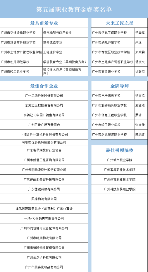 注:“第五屆職業(yè)教育金睿獎”名單由線上點贊數(shù)據(jù)統(tǒng)計及線下專家評審團相關(guān)綜合評定意見得出。