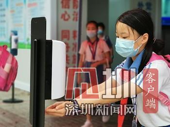 我起了個大早,高高興興地來到學(xué)校。在校門口不遠(yuǎn)處,我看見一排排金色小腳印在望著我笑,好像在對我說:“歡迎你返校!”進(jìn)入校園后,熟悉的林蔭道下多了許多的大帳篷,帳篷中間有一個巨大的測溫箱。走過測溫箱,一排感應(yīng)免洗洗手液站得筆直,正在招呼我們趕緊洗手消毒。因為新冠疫情,我們的校園不一樣了,多了許多守護(hù)我們健康的安全小衛(wèi)士。