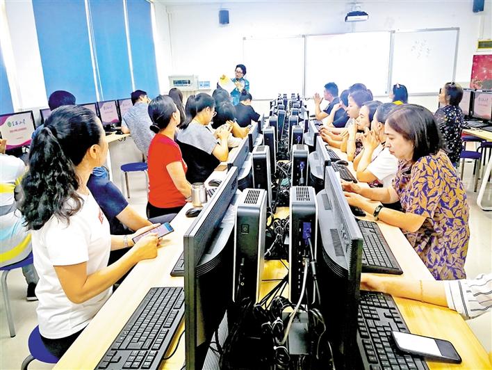 寶安小學高級會計師李麗組織教師進行內(nèi)控信息化系統(tǒng)實操培訓。
