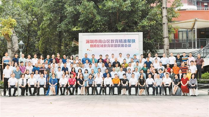 南山區(qū)在全省首創(chuàng)成立南山、連平、百色跨區(qū)域教育聯(lián)盟,先后兩批,共有南山區(qū)四大教育集團(tuán)分別與對口幫扶學(xué)校結(jié)成跨區(qū)域聯(lián)盟學(xué)校,實(shí)行聯(lián)盟管理,德??h職業(yè)技術(shù)學(xué)校加入南山職教集團(tuán)成為會員單位。2018年以來,南山跨區(qū)域教育聯(lián)盟集團(tuán)的四位總校校長帶領(lǐng)師生百余人赴三地聯(lián)盟學(xué)校,把南山優(yōu)質(zhì)教育資源向幫扶地區(qū)輻射。
