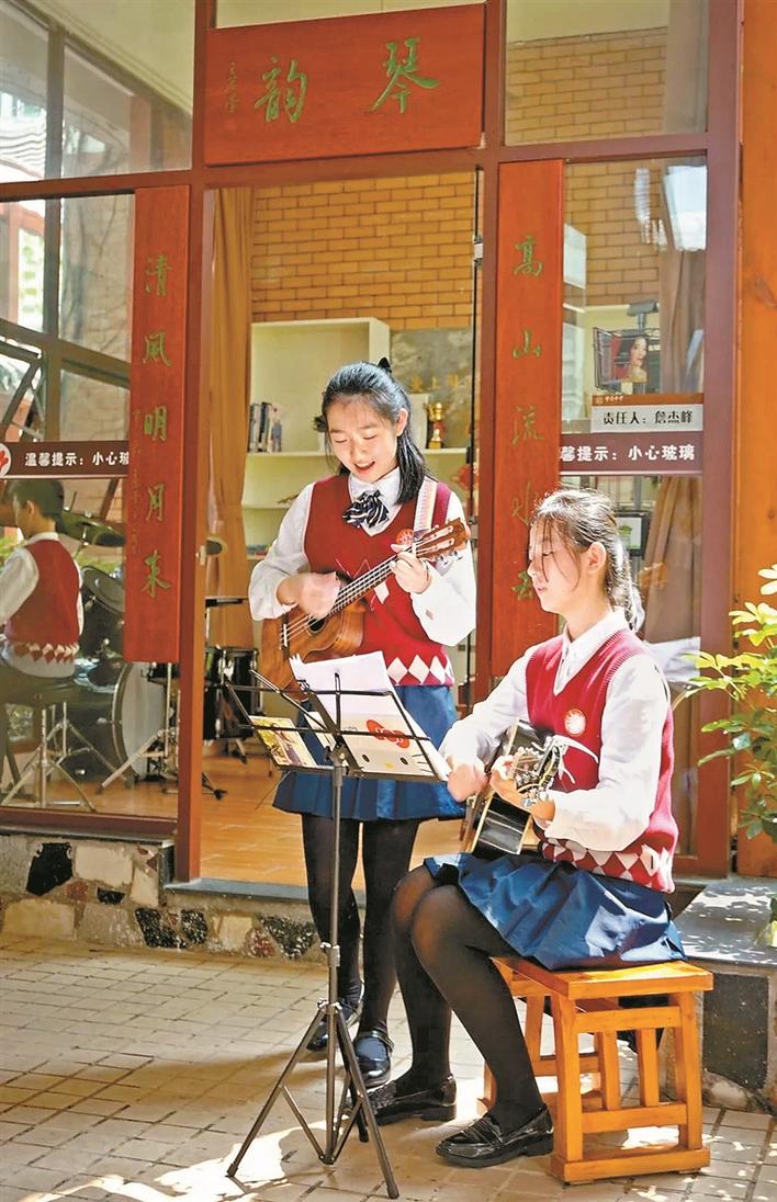 校園一角的“樂·舞臺”上擺放著一架鋼琴,陳鐵成校長說:“在沒有疫情的時候,這架鋼琴是不上鎖的,任何老師或?qū)W生都可以彈奏。同樣開放的還有琴韻閣、清心閣,不要擔心學生會破壞這些東西,美自然地呈現(xiàn)在學生們面前,自然地發(fā)生,真正的教育就是在這樣的情境中發(fā)生的?!?/p>
