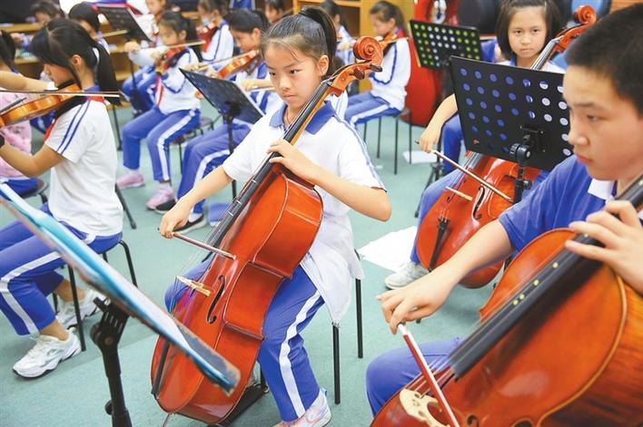 ▲海濱實(shí)驗(yàn)小學(xué)深圳灣部學(xué)生放學(xué)后在校排練交響樂(lè)。