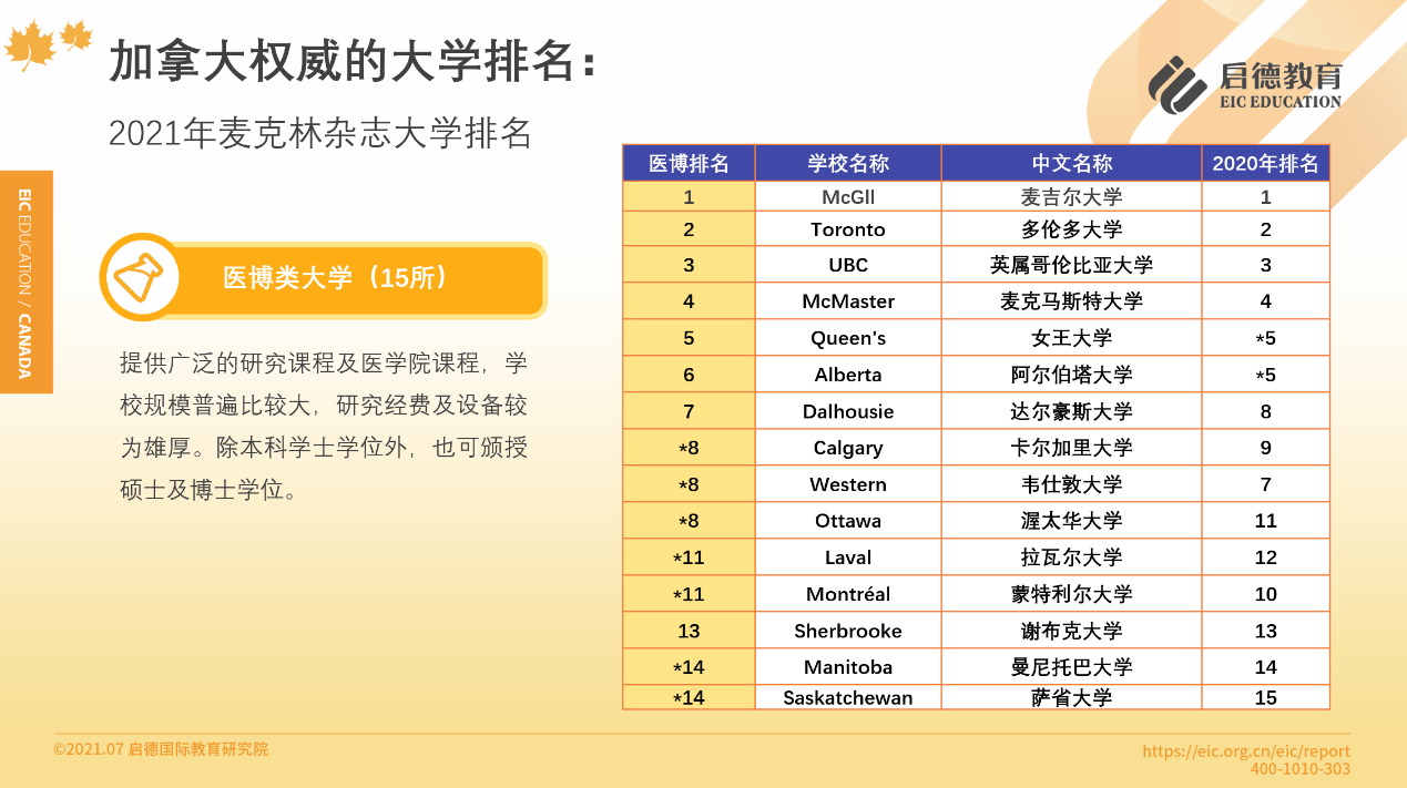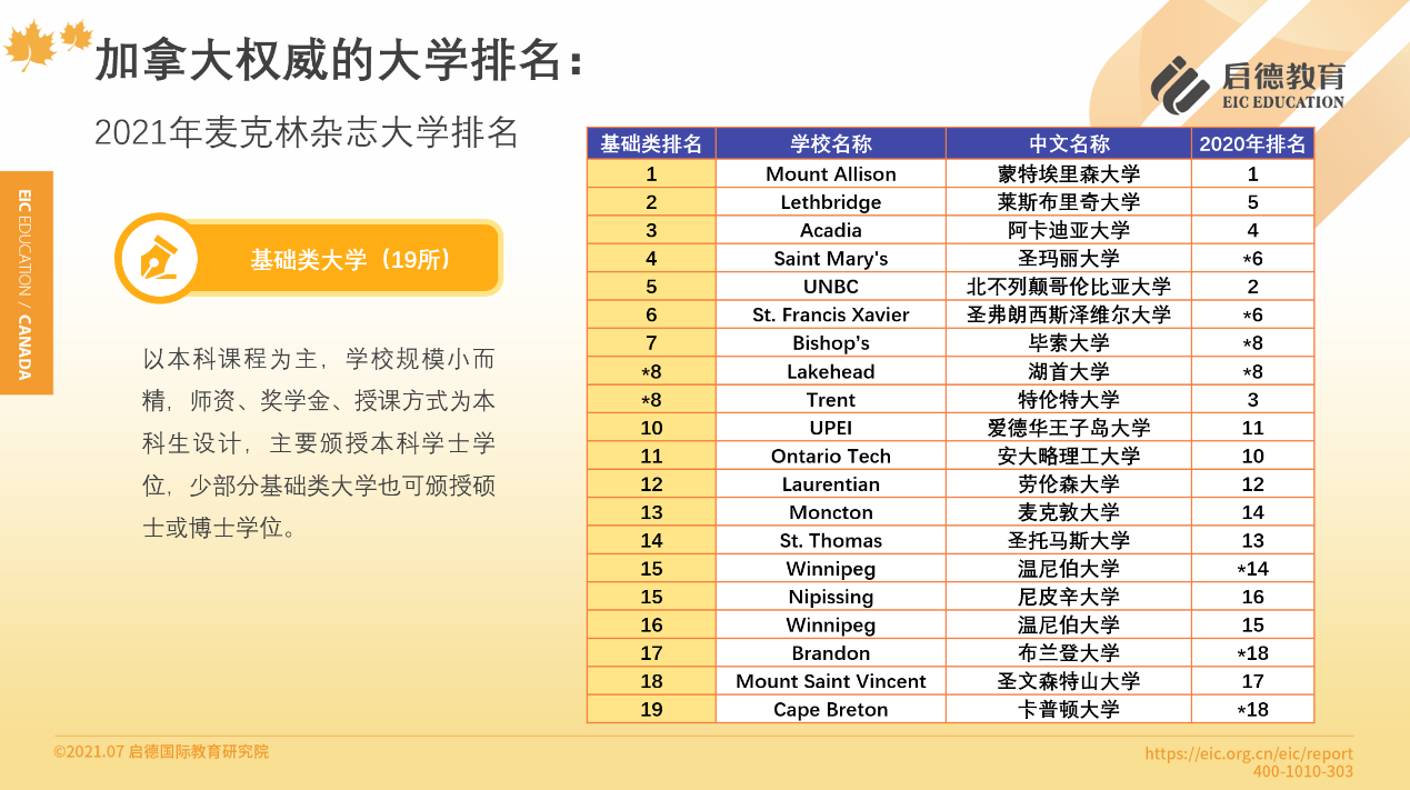 加拿大高校以公立為主,各具特色與優(yōu)勢,教育質量在官方評價體系中并沒有顯著區(qū)別,因此,啟德教育建議,在選擇院校時,除了參考麥克林雜志排名,還應該通過院校官網(wǎng)或者留學顧問,更全面地了解加拿大高校的實力。麥克林排名根據(jù)加拿大大學的類型,分為醫(yī)博類、綜合類、基礎類三個排名,值得一提的是,連續(xù)21年位于基礎類大學排名榜首的蒙特艾莉森大學,是加拿大本科畢業(yè)生中獲得羅德獎學金人數(shù)最多的學校,羅德獎學金又被稱為“全球本科生諾貝爾獎”。此外,基礎類排名第19的卡普頓大學,在最近一期的Analytics Insight雜志中,與美國麻省理工學院、英國華威大學等一同入選了2021年10家最著名的分析和數(shù)據(jù)科學機構。