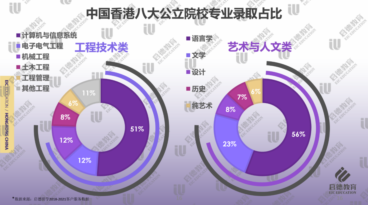 計算機與信息系統(tǒng)(51% )、電子電氣工程(12% )和機械工程(12% )在工程技術(shù)類學(xué)科中錄取占比最多。作為金融中心的香港,銀行或金融機構(gòu)對于復(fù)合型人才的需求非常大,除了港校的工程學(xué)院設(shè)置計算機與信息系統(tǒng)專業(yè)外,很多學(xué)校都有商學(xué)院和工程學(xué)院聯(lián)合授課的商務(wù)資訊系統(tǒng)類專業(yè)。得益于深圳高科技產(chǎn)業(yè)對通信方面人才的需求量,去香港就讀電子電氣工程專業(yè)的學(xué)生也在增多,除了電子工程、通信工程弱電專業(yè)以外,香港大學(xué)和香港理工大學(xué)還設(shè)有針對強電的相關(guān)課程,學(xué)生畢業(yè)后可回到內(nèi)地從事電力系統(tǒng)的相關(guān)工作。QS排名前100的5所名校均設(shè)置機械工程專業(yè),工程類專業(yè)的錄取難度相對略低,學(xué)生可獲得更大的入讀名校的機會。