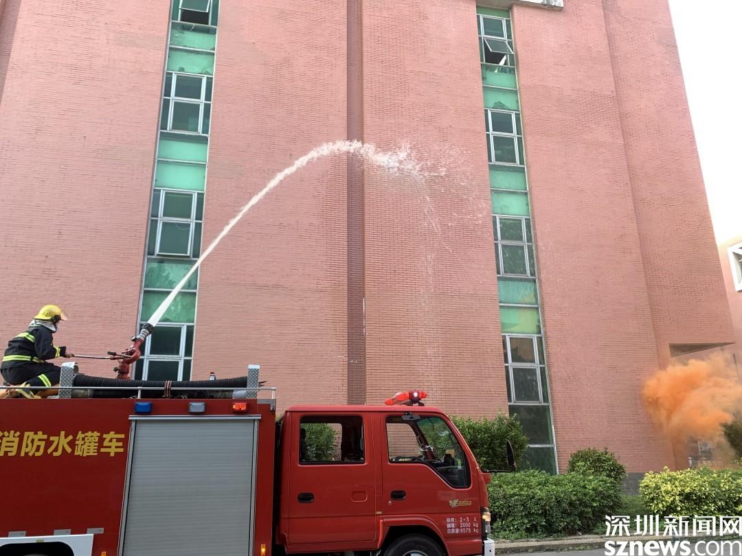 演練情景設(shè)定為工業(yè)園巡查人員發(fā)現(xiàn)火情,立刻上報(bào)并報(bào)警。隨后火警警報(bào)驟響,樓道內(nèi)冒出濃煙,疏散演練正式開(kāi)始。工業(yè)園職工、居民在各組工作人員的指揮下,用口罩、衣服等捂口鼻,屈膝彎腰沿著既定的疏散路線,迅速向安全區(qū)域撤離。隨后社區(qū)消防員到達(dá)現(xiàn)場(chǎng),用消防高壓水槍進(jìn)行高空滅火,撲滅火災(zāi),解除警報(bào)。演練結(jié)束后,社區(qū)還組織工業(yè)園職工、居民參加安全體驗(yàn)活動(dòng),學(xué)習(xí)消防救援設(shè)備的用法、進(jìn)行消防結(jié)繩和滅火實(shí)操訓(xùn)練。