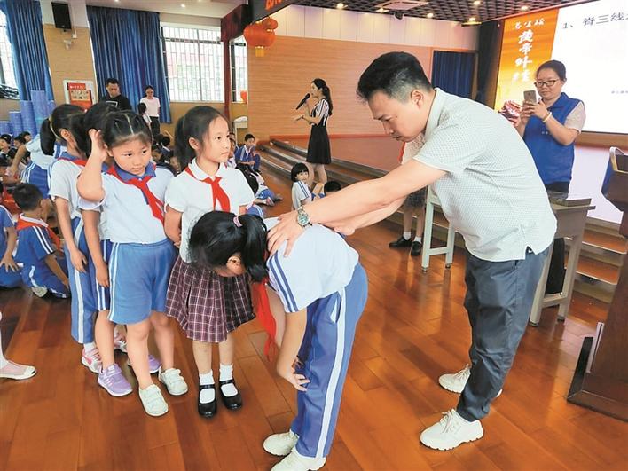 深圳市抗衰老研究會邀請專家史清泉醫(yī)生到景鵬小學(xué)開展脊柱健康公益活動,為學(xué)生進行脊柱側(cè)彎篩查。