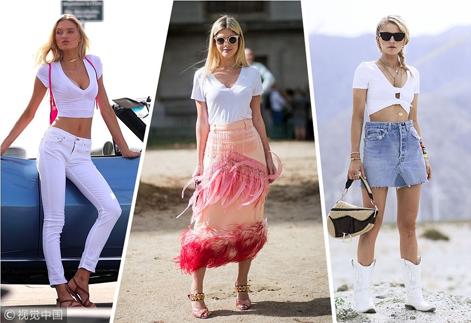 減肥大計(jì)完成的怎么樣?女孩子永遠(yuǎn)都在減肥的道路上艱難前行,減肥這件事根本沒有終點(diǎn)。即使對自己身材不滿意也不用慌,是時(shí)候祭出這件V領(lǐng)T恤了,纖細(xì)鎖骨、優(yōu)雅天鵝頸露出來早就吸引了各路眼球,簡直是心機(jī)之王。除了顯瘦功能強(qiáng)大,V領(lǐng)T恤更是萬能百搭,單穿or內(nèi)搭樣樣都是扛把子。(圖片來源:視覺中國)