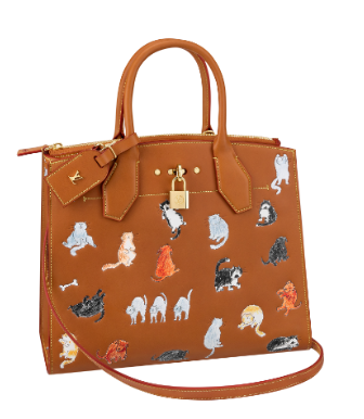 該系列的裝飾圖案以 Grace的兩只波斯貓 Pumpkin與 Blanket,以及 Nicolas的愛犬 Léon為主角。在呼應(yīng) Grace火紅發(fā)色的橙色 Monogram花紋或單色 Monogram花紋背景下,她親手繪制的三只小動物騰躍嬉戲,它們成為路易威登創(chuàng)造全新標(biāo)志性設(shè)計元素: Catogram。