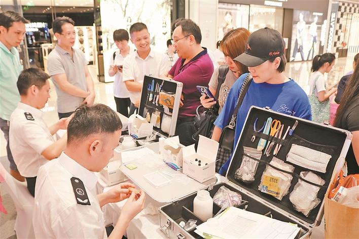 “我想檢測一下我的化妝品是否安全”,市民蔣女士帶著自己日常用的面膜在壹方城化妝品快檢點排起了隊,“往臉上涂的一定要格外注意,有沒有非法添加違禁物質要檢測后才知道,看到今天有免費檢測,我就立馬過來了”。原來,為強化轄區(qū)化妝品的監(jiān)管力度,深化消費者對化妝品安全的認識,深圳市市場和質量監(jiān)督管理委員會寶安局醫(yī)療器械科9月13日在壹方城內舉行了以“守護美麗,安全同行”為主題的化妝品安全宣傳活動,現場的“你送我檢”活動備受愛美人士歡迎。市市場和質量監(jiān)管委?;幐碧庨L方友川、市市場和質量監(jiān)管委寶安局副局長陳子晟參與當天活動。