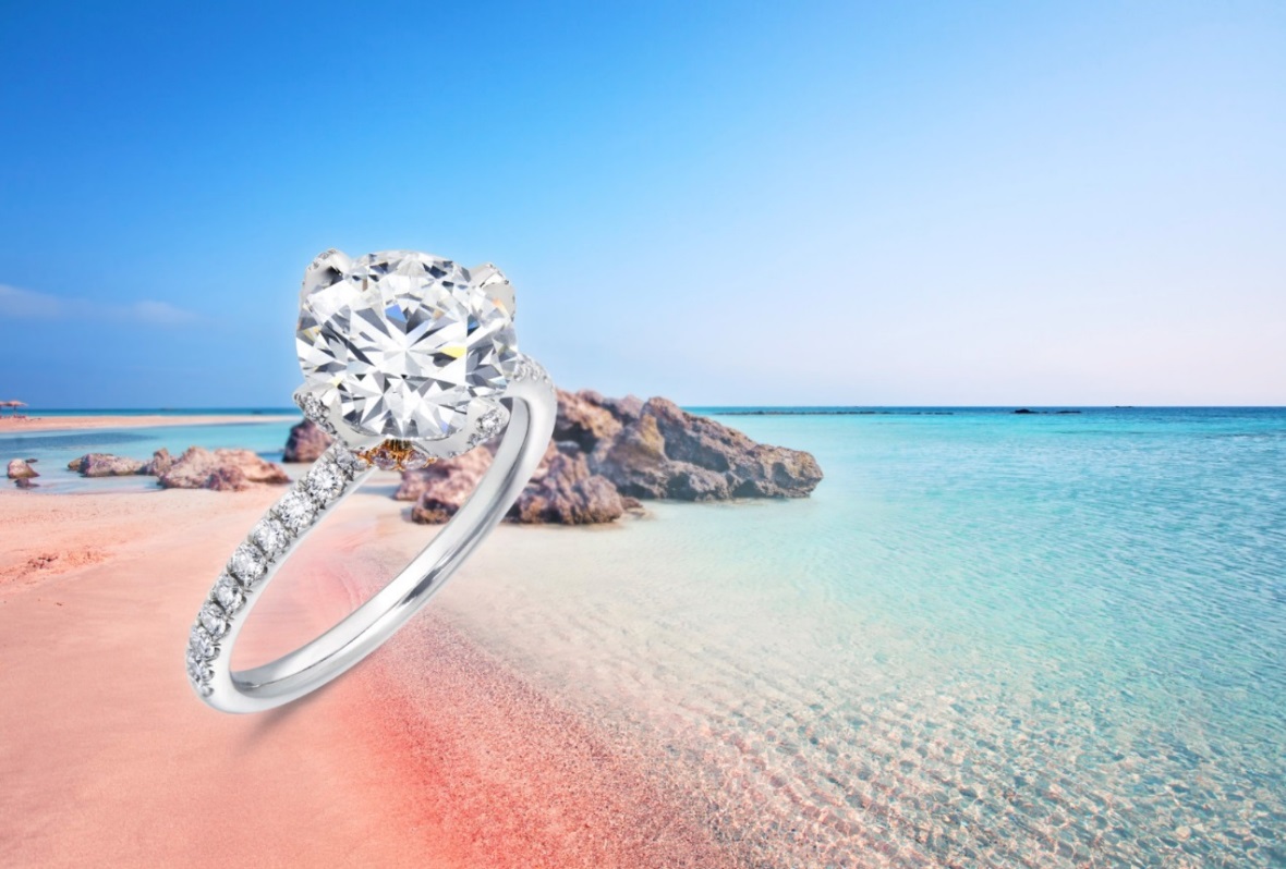 淺藍(lán)色的薄浪卷著粉沙,這層少女心的暈染撩動(dòng)心弦,同樣讓人心動(dòng)的是,特別為愛甄選的 Infini Love Diamond「全愛鉆」婚嫁系列鉑金鉆石及玫瑰金粉紅鉆戒,以0.03%的珍稀詮釋夫妻二人對彼此全情的愛。極富創(chuàng)意的花瓣鑲嵌設(shè)計(jì),宛若新郎對新娘捧在手心無微不至的呵護(hù),在愛的滋養(yǎng)下,散發(fā)出耀眼奪目的光彩。一如兩人的愛,不曾因歲月黯淡,反而愈發(fā)堅(jiān)定純粹。