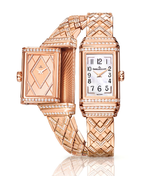 積家 Reverso One Duetto Jewelry雙面翻轉(zhuǎn)系列珠寶腕表玫瑰金款糅合大工坊的高級(jí)珠寶與高級(jí)制表工藝,為女性呈獻(xiàn)一款完美平衡藝術(shù)設(shè)計(jì)和功能性的珠寶杰作。此腕表從裝飾藝術(shù)汲取靈感,長(zhǎng)方形表盤、背面表盤的菱形圖案,以及18K玫瑰金表鏈的設(shè)計(jì),其線條細(xì)致修長(zhǎng),展現(xiàn)高雅的女性魅力。此外,表盤上、下均采用標(biāo)志性的三道裝飾刻紋,令這款可翻轉(zhuǎn)的腕表更具特色。裝飾藝術(shù)風(fēng)格自誕生起一直引領(lǐng)時(shí)尚,歷久常新。這款典范之作完美詮釋了裝飾藝術(shù)風(fēng)格的簡(jiǎn)約設(shè)計(jì)哲學(xué)。