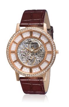 積家 Master Ultra Thin Squelette超薄大師系列鏤空腕表鑲鉆款明確地將璀璨光澤視為設(shè)計(jì)主線。以不同方式鐫刻和裝飾一系列不同的腕表部件熠熠生輝,每個(gè)時(shí)區(qū)皆裝飾一片手工雕刻的天然珍珠母貝,質(zhì)感精致細(xì)膩。積家擁有悠久的超薄腕表制作傳統(tǒng),其歷史可追溯至1907年。大工坊選擇將鏤空工藝、雕刻工藝、琺瑯工藝及珠寶鑲嵌等超凡的手工技藝與超薄制表技術(shù)相互結(jié)合,極具創(chuàng)意。