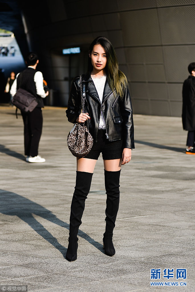 當(dāng)?shù)貢r(shí)間2018年10月16日,韓國(guó)首爾,2019春夏首爾時(shí)裝周:潮人街拍。 (圖片來源:視覺中國(guó))