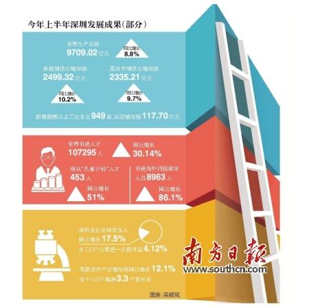 創(chuàng)新是深圳率先實(shí)現(xiàn)成功轉(zhuǎn)型的亮麗名片,是深圳率先實(shí)現(xiàn)動(dòng)力轉(zhuǎn)換的制勝秘訣。如果說(shuō),作為特區(qū),深圳之“特”過(guò)去更多地體現(xiàn)在政策探路,那么,現(xiàn)在則更多體現(xiàn)在轉(zhuǎn)型創(chuàng)新。近年來(lái),深圳經(jīng)濟(jì)特區(qū)把創(chuàng)新作為城市主導(dǎo)戰(zhàn)略,先后制定了全國(guó)首部國(guó)家創(chuàng)新型城市總體規(guī)劃和促進(jìn)科技創(chuàng)新的地方性法規(guī),出臺(tái)自主創(chuàng)新“33條”、創(chuàng)新驅(qū)動(dòng)發(fā)展“1+10”若干措施等一系列政策措施。經(jīng)過(guò)多年不懈的努力,深圳創(chuàng)新驅(qū)動(dòng)發(fā)展取得了積極成效,創(chuàng)新正加快向高端前沿邁進(jìn),從跟跑、并跑向領(lǐng)跑躍升。在創(chuàng)新的驅(qū)動(dòng)下,深圳實(shí)現(xiàn)了新常態(tài)下動(dòng)力轉(zhuǎn)換和新一輪轉(zhuǎn)型升級(jí),保持了有質(zhì)量、有效益、可持續(xù)的發(fā)展。事實(shí)為證:今年上半年,深圳全社會(huì)研發(fā)投入增長(zhǎng)17.5%,占GDP比重進(jìn)一步提升至4.12%;高新技術(shù)產(chǎn)業(yè)增加值增長(zhǎng)12.1%,快于GDP增速3.3個(gè)百分點(diǎn),呈現(xiàn)出“逐季攀高、質(zhì)量提升、結(jié)構(gòu)優(yōu)化、動(dòng)力增強(qiáng)、趨勢(shì)向好”的鮮明特點(diǎn)。