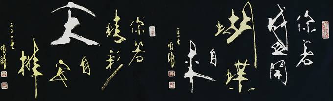黃明勝從事書法與篆刻鉆研已逾30年,他認(rèn)為:美感的建立才是學(xué)習(xí)藝術(shù)的第一步,而非技法;奠定了美感的基礎(chǔ)再從中建立自己的價(jià)值,隨波不逐流。秉持『自出新意,不踐古人』的理念,書寫從未臨帖,歷經(jīng)數(shù)十載,而今創(chuàng)作出融合中國傳統(tǒng)藝術(shù)與現(xiàn)代風(fēng)格的書法創(chuàng)新體裁—『書畫體』。