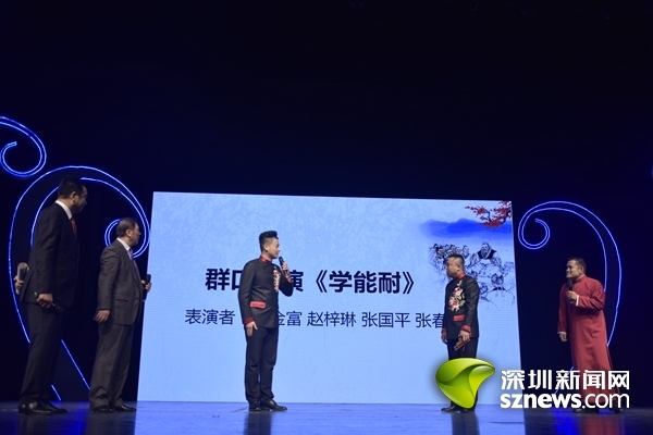 其后還有中國快板藝術(shù)委員會主任、著名快板書表演藝術(shù)家、非物質(zhì)文化遺產(chǎn)傳承人、中國曲藝牡丹獎得主李少杰帶來的經(jīng)典快板《天安門廣場看升旗》,質(zhì)樸的詞句,充沛的情感,以看升旗為出發(fā)點,表達的都是對國家的熱愛;古文新說題材的相聲《趣說文言文》,帶來了頗為新鮮的體驗;還有以深圳市鹽田區(qū)抗戰(zhàn)時期的真人真事改編的評書《龍嘴兒》、傳統(tǒng)相聲《大保鏢》和《學(xué)歌曲》等,曲種豐富多樣,令全場掌聲雷動,觀眾們贊不絕口。