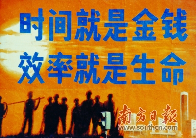 “時(shí)間就是金錢、效率就是生命”標(biāo)語(yǔ)牌。蛇口改革開(kāi)放博物館供圖