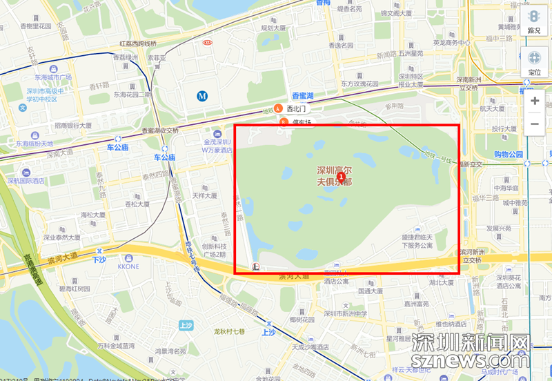 2015年10月16日,深圳新聞網(wǎng)無(wú)人機(jī)團(tuán)隊(duì)曾對(duì)此塊用地進(jìn)行了航拍。深圳高爾夫俱樂(lè)部球場(chǎng),深圳經(jīng)濟(jì)特區(qū)第一個(gè)高爾夫球場(chǎng),用地位于福田中心區(qū)深南大道與濱河大道之間,東鄰新洲路,西距香蜜湖路。有人認(rèn)為這座球場(chǎng)的存在,使得城市交通微循環(huán)被阻隔,但也因?yàn)檫@座球場(chǎng)的存在,深圳市中心得以保留一塊巨大的綠肺,沒(méi)有受到鋼筋水泥侵蝕。