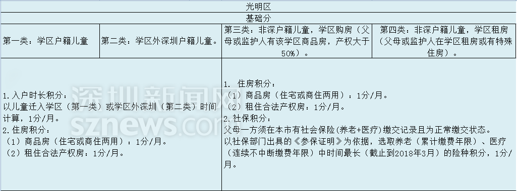 光明新區(qū)按學(xué)位類型順序錄取,第一類>第二類>第三類>第四類,相同學(xué)位類型,按積分由高到低順序錄取。
