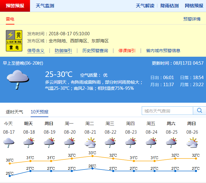 深圳新聞網訊(記者 施冰冰)深圳市氣象臺預計,17日深圳多云間陰天,有陣雨,部分時間雨勢較大,氣溫26-30℃;18-19日多云,間中有陣雨或雷陣雨;20日起陽光增多,偶有短時陣雨,天氣趨于炎熱。
