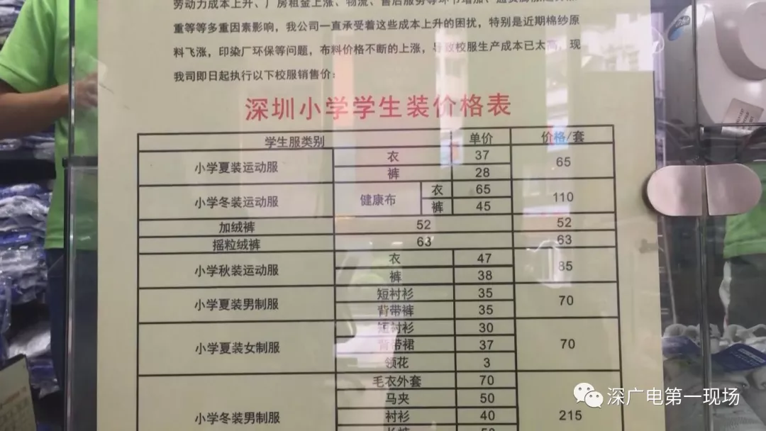 記者了解到,2011年,深圳校服曾進(jìn)行過(guò)調(diào)價(jià),當(dāng)時(shí)教育部門(mén)發(fā)布通告稱,由于廠家成本上升,校服價(jià)格統(tǒng)一調(diào)整,平均價(jià)格比之前高出14.02%。之后,這一價(jià)格標(biāo)準(zhǔn)一直沿用。