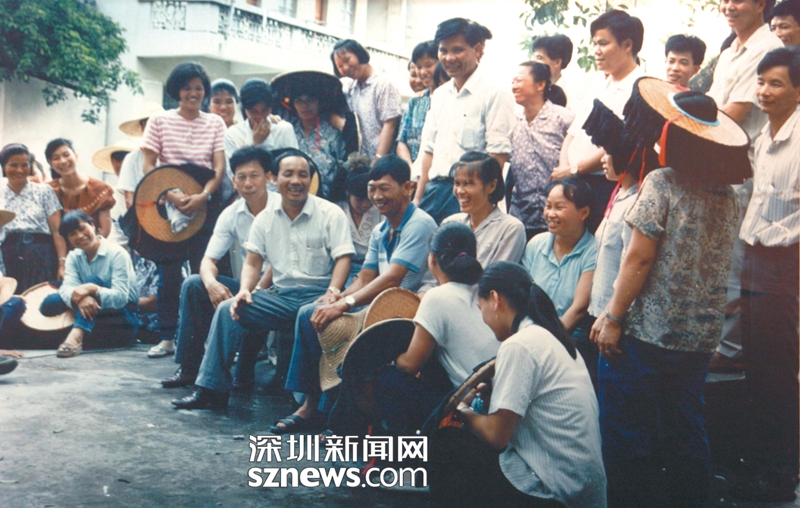 上個世紀(jì)八十年代,南嶺村老書記張偉基(中)與黨員群眾在談心