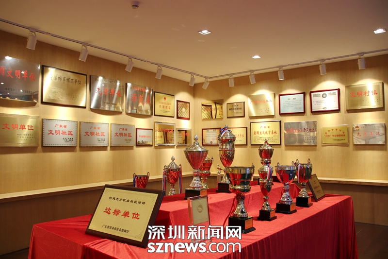 南嶺村村史展覽館里陳列歷年來獲得榮譽(yù)牌匾和獎杯