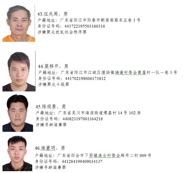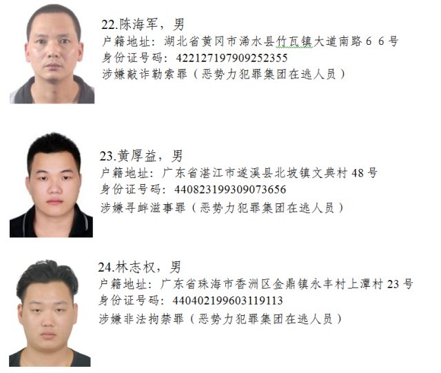 近日,省掃黑除惡辦和省公安廳聯(lián)合公開懸賞50名在逃黑惡勢力犯罪嫌疑人,經(jīng)查證屬實并予以抓獲的,獎勵人民幣1-5萬元不等。見到下面這50名在逃黑惡勢力犯罪嫌疑人,請果斷舉報!