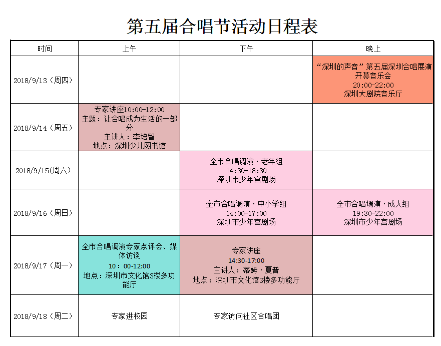 14天21場合唱活動深圳合唱盛會將啟幕