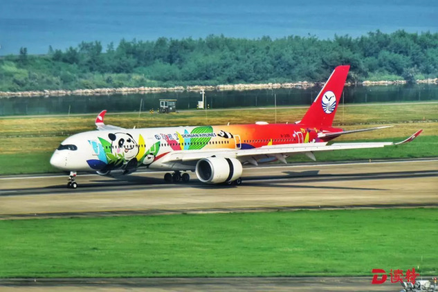 ⑧ 9月5日,深圳機(jī)場(chǎng)迎來(lái)了一位“新貴”。 四川航空首架A350-900型飛機(jī)首秀深圳,萌噠噠的“熊貓彩繪”飛機(jī)驚艷出場(chǎng)。