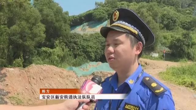 寶安區(qū)新安街道執(zhí)法隊隊員陳方說,按規(guī)定只準(zhǔn)填埋這個公園建設(shè)產(chǎn)生的黃泥,但是當(dāng)事人填埋了外面拖來的磚渣,這不符合公園建設(shè)的規(guī)定。