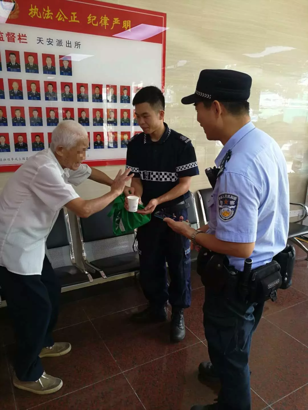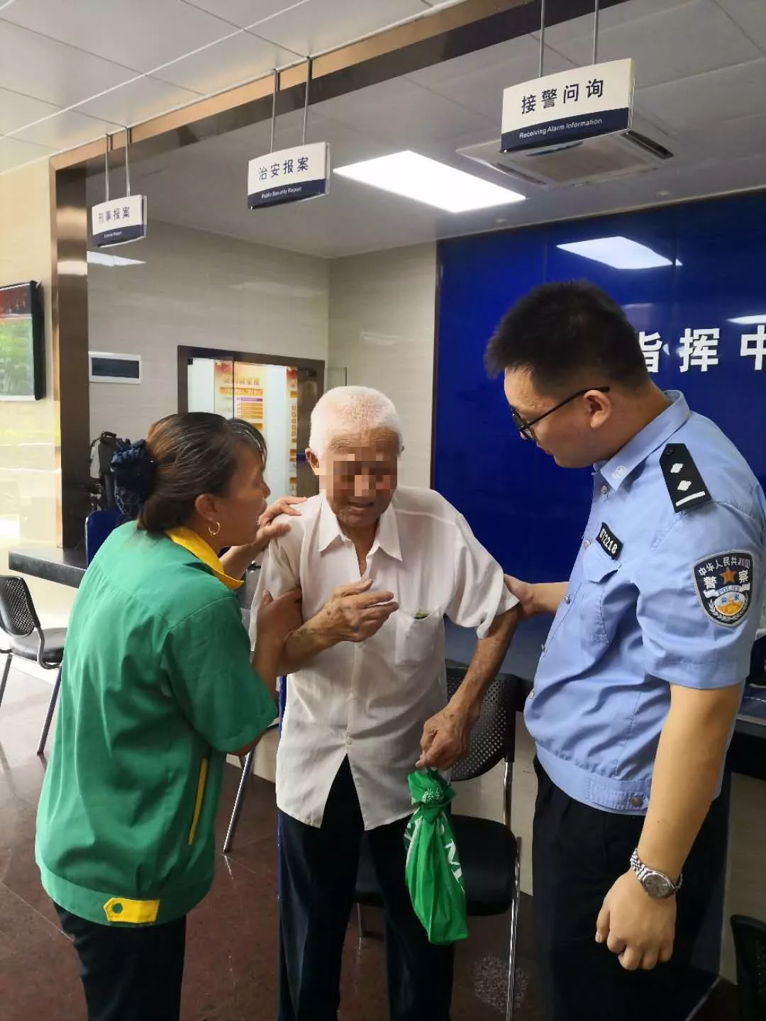 9月19日中午12時30分許,天安派出所巡防隊員在福田汽車站警銀亭值守時,發(fā)現(xiàn)一名疑似走失老人,巡防員上前詢問情況后立即將情況上報值班室。巡邏民警邱志堅趕到現(xiàn)場,由于老人高齡,語言不通,無法獲得更多有效信息,于是帶回派出所進一步處理。