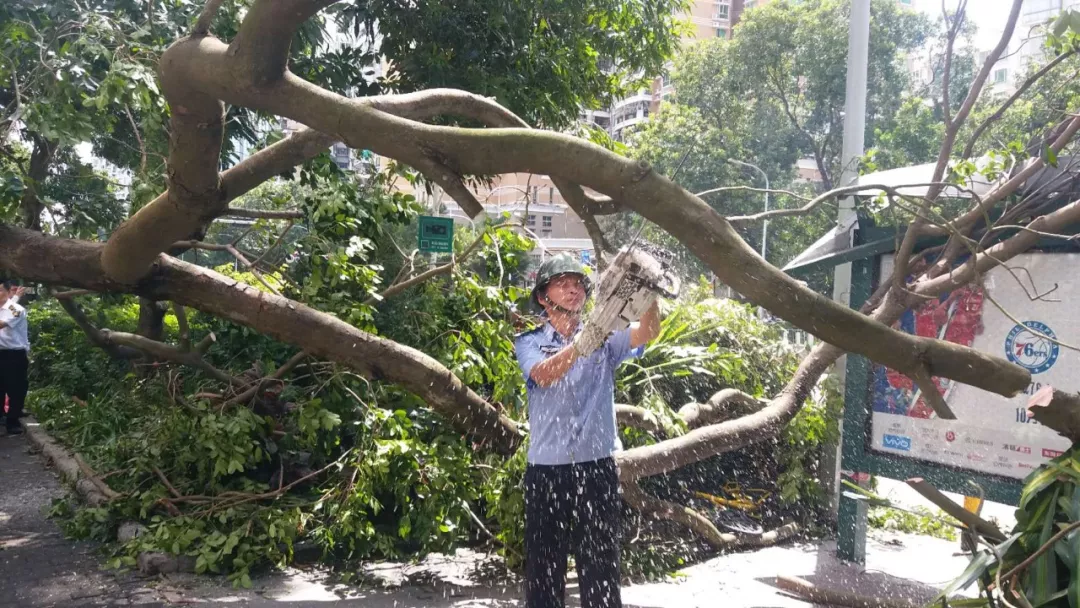附近的某施工單位受到此次臺風影響也很大,但是在救援過程中提供了力所能及的幫助。比如現(xiàn)場的吊車、運輸車等施工工具和建筑工地的一線工作人員,對于道路清理作業(yè)非常專業(yè)有效。連帶著附近的物業(yè)公司、安保公司、社區(qū)工作站等都紛紛加入。“警力是有限的,但民力無窮?!碧祈樔A說,“這次的災后修復工作,市民積極熱心地主動作為、主動參與也給我極大鼓舞。”