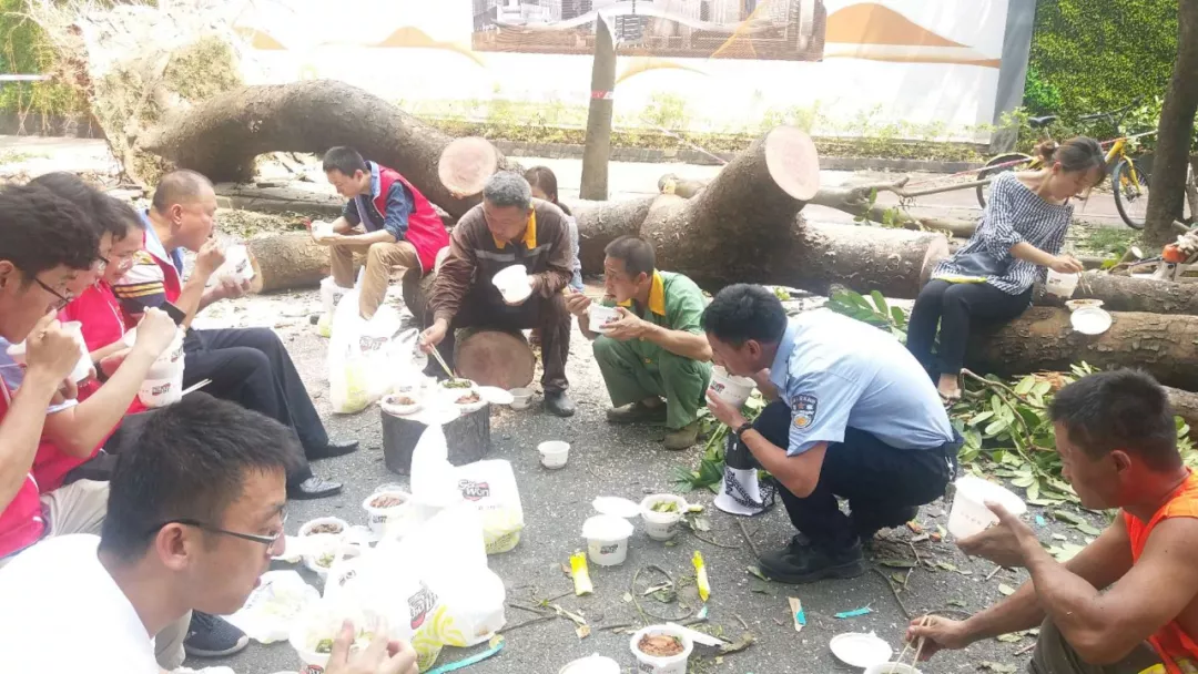 從臺風前到臺風后,唐順華一直在一線。他不僅是一個指揮員,還是一名戰(zhàn)斗員,一起去處理倒伏樹木、清理路障。因為人手非常有限,他不僅一直要組織指揮,自己也一直身體力行,連續(xù)90多個小時沒有回家,一直在轄區(qū),排查隱患,處理事情。