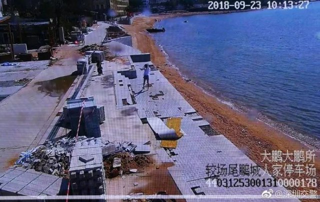 較場(chǎng)尾海灘上一片狼藉