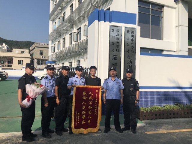 9月21日,楊先生身體康復(fù)出院,就馬上帶著錦旗趕到了深圳市公安局鹽田分局巡警大隊。當(dāng)他見到當(dāng)初救助自己的民警后,竟激動得跪了下來!"沒有你們的救助,哪有我今天的健康,日后的幸福更無從談起,感謝人民的好公仆、好警察。"楊先生不停地說。