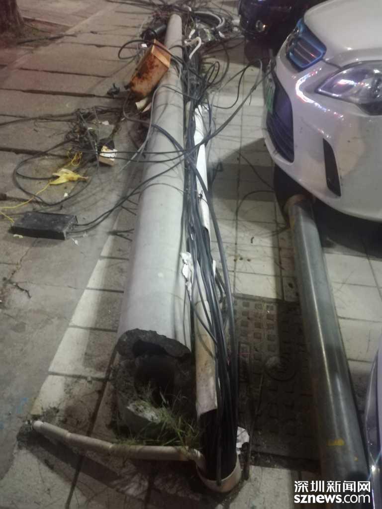 “山竹”刮倒寶安區(qū)石巖街道電線桿,漏電隱患誰來解決?