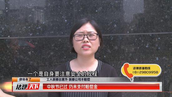 中秋節(jié)已經(jīng)過去3天了,截至記者發(fā)稿,蜂巢裝飾有限公司仍未支付給受傷工人朱先生第一筆賠償金。工友朱先生已經(jīng)很寒心,他說自己怎么都想不到蜂巢裝飾公司會這樣沒有誠信,《法觀天下》嘉賓律師趙乙橋表示,根據(jù)《深圳市建筑施工行業(yè)參加工傷保險的管理辦法》,她建議施工方能夠及時的給工人購買意外保險,如遇類似的意外可以有效地分擔賠償。(記者鄭興)