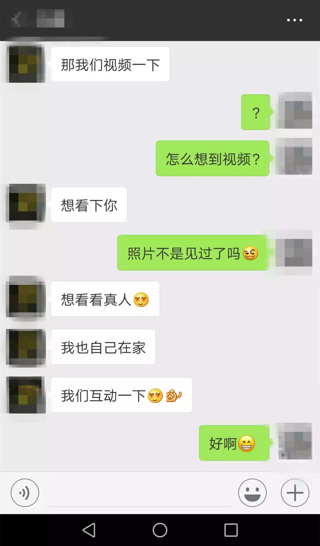 據(jù)龍崗警方介紹9月底的一個(gè)夜晚,龍崗的陳先生微信通過(guò)了一名昵稱(chēng)為“想你的夜”的女子的好友申請(qǐng),沒(méi)過(guò)一會(huì)兒,女子告訴陳先生“老公出差去了,一個(gè)人在家很寂寞”,便開(kāi)始語(yǔ)音挑逗并提議視頻聊天。