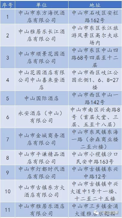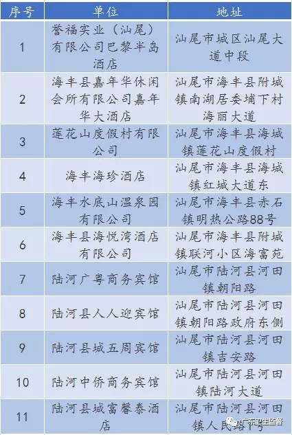 廣東省A級(jí)住宿單位名單