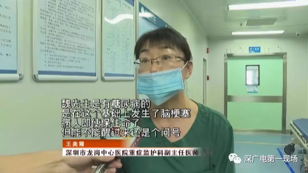 蕭先生介紹,魏師傅從一開始的清醒到病情加重,只有前后十幾分鐘的時間。等120救護車送到龍崗中心醫(yī)院之后,魏師傅已經(jīng)陷入昏迷,不省人事。