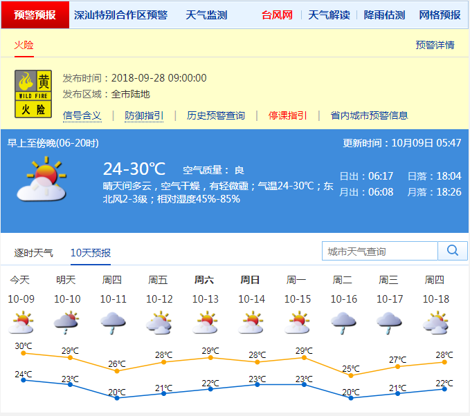 鵬城今日以晴朗天氣為主,部分時(shí)間云量較多,早晚溫差增大,最低氣溫在23℃左右,最高氣溫在31℃左右。灰霾仍會(huì)潛入鵬城,市民應(yīng)注意預(yù)防呼吸道疾病。