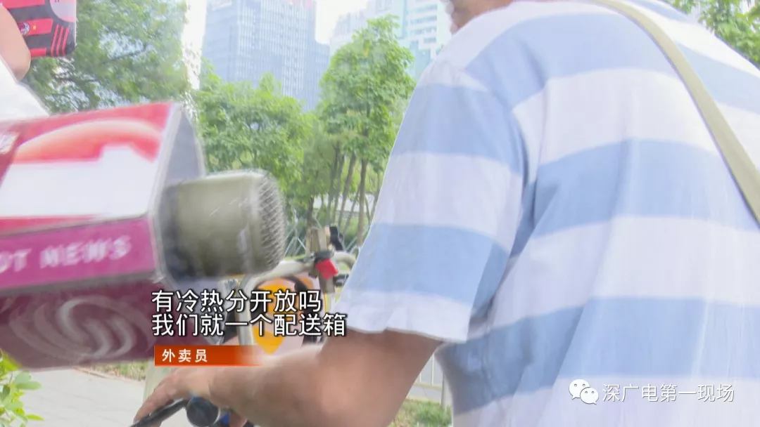 隨后送來的三份外賣里,冷飲和飯菜同樣是混合放在一個(gè)外賣箱中一起送過來。大部分外賣員反映,外賣箱沒有明確區(qū)分冷藏和熱藏區(qū)成了最大問題,對(duì)于商家統(tǒng)一打包的冷飲和熱飯菜,他們大多也都不會(huì)主動(dòng)去分開運(yùn)送。