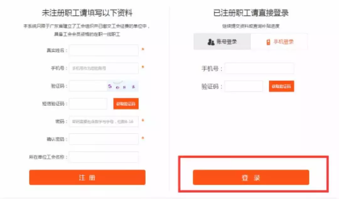 2.已注冊職工,點(diǎn)擊選擇“已登記用戶”--填寫賬號密碼--點(diǎn)擊“登錄”。