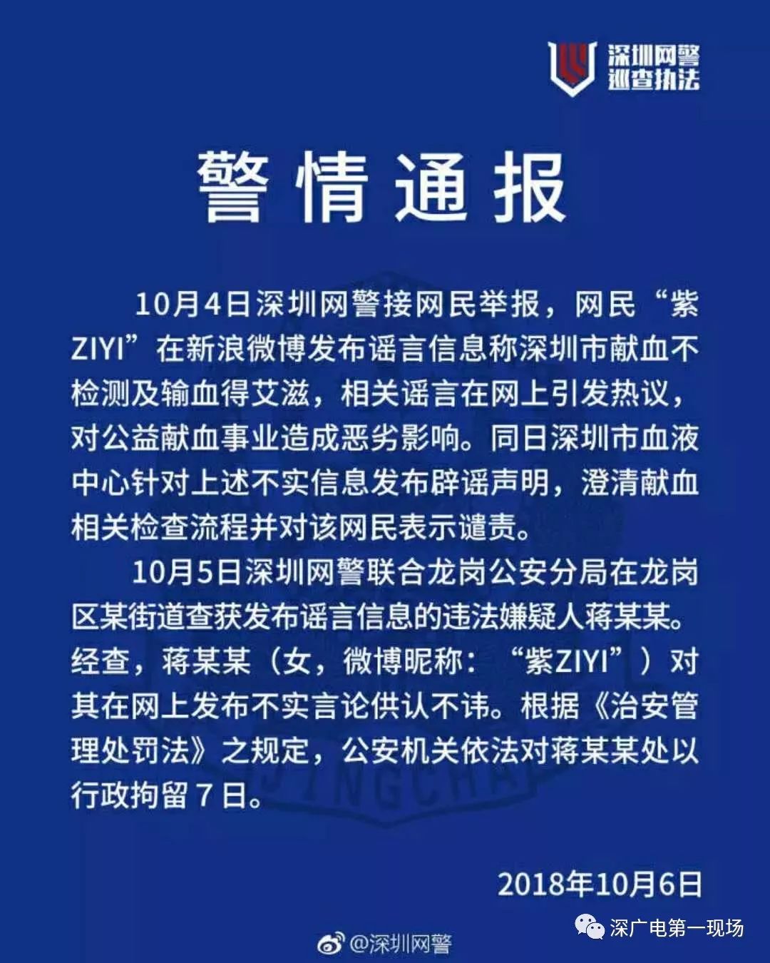 10月4號(hào),微博名為“紫ZIYI”網(wǎng)友在微博上發(fā)布了“深圳獻(xiàn)血不檢測、輸血得艾滋”的消息一言激起千層浪,言論被廣泛傳播。