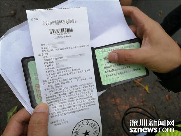 深圳交警對(duì)泥罐車司機(jī)開出罰單:罰款100元扣2分