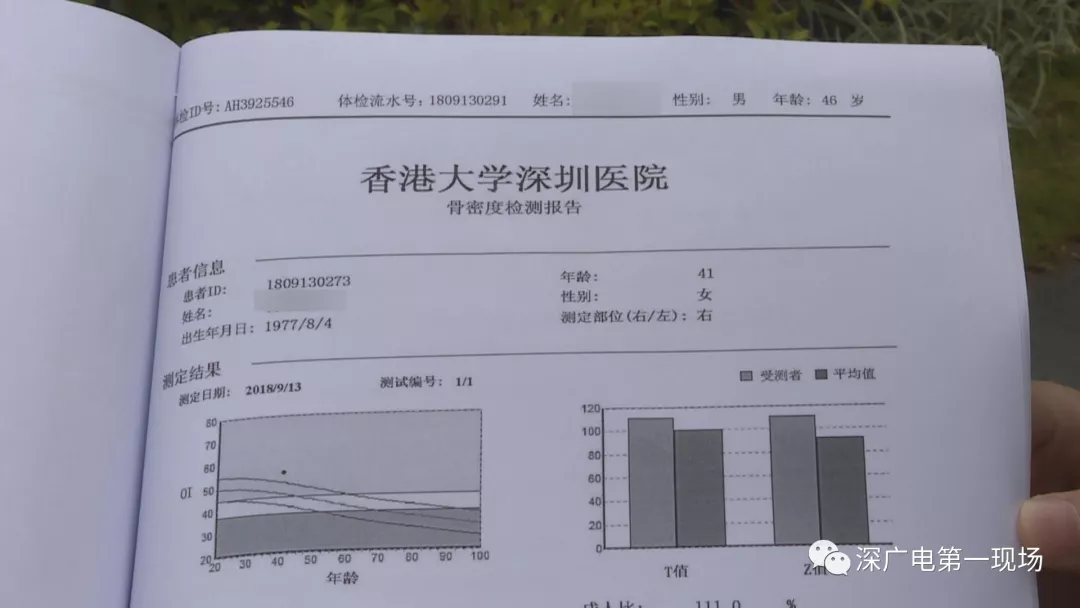 李先生也向記者展示了自己的這份體檢報告,在體檢報告的封面上,確實是李先生的信息,然而就在骨密度的檢查結(jié)果頁面中,顯示了一位女性的個人信息,其中名字年齡都有,但是在頁眉上,還是李先生的體檢流水單號。