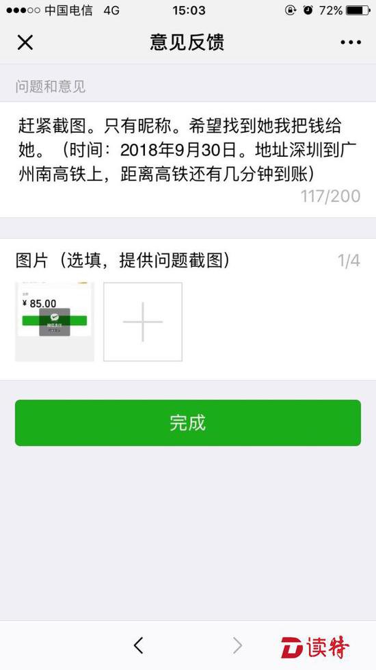 可由于高鐵上網(wǎng)絡信號不好,李先生的微信支付一直顯示是"處理中",過了一分鐘才顯示轉(zhuǎn)帳失敗,而這時,高鐵已經(jīng)到了廣州南站,李先生又下了車,在廣州南站下車的乘客中找了幾分鐘,但沒有找到這個女孩。由于自己也要在廣州南站轉(zhuǎn)車,李先生時間也很緊,就匆忙上了下一趟去武漢的火車。